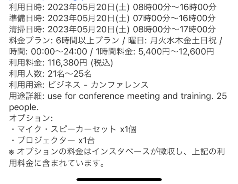 たとえば、土曜日の7:00~16:00の利用で116,380円。