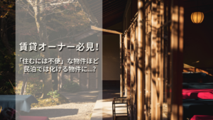 チェックポイント: 特約には、民泊や旅館業として利用する旨が明記されているかを確認しましょう。弊社で仲介をさせていただく際には、豊富な実績を活かし、事業者様・オーナー様の双方が可能な限り納得いただける内容になるよう、サポートさせていただきます。
