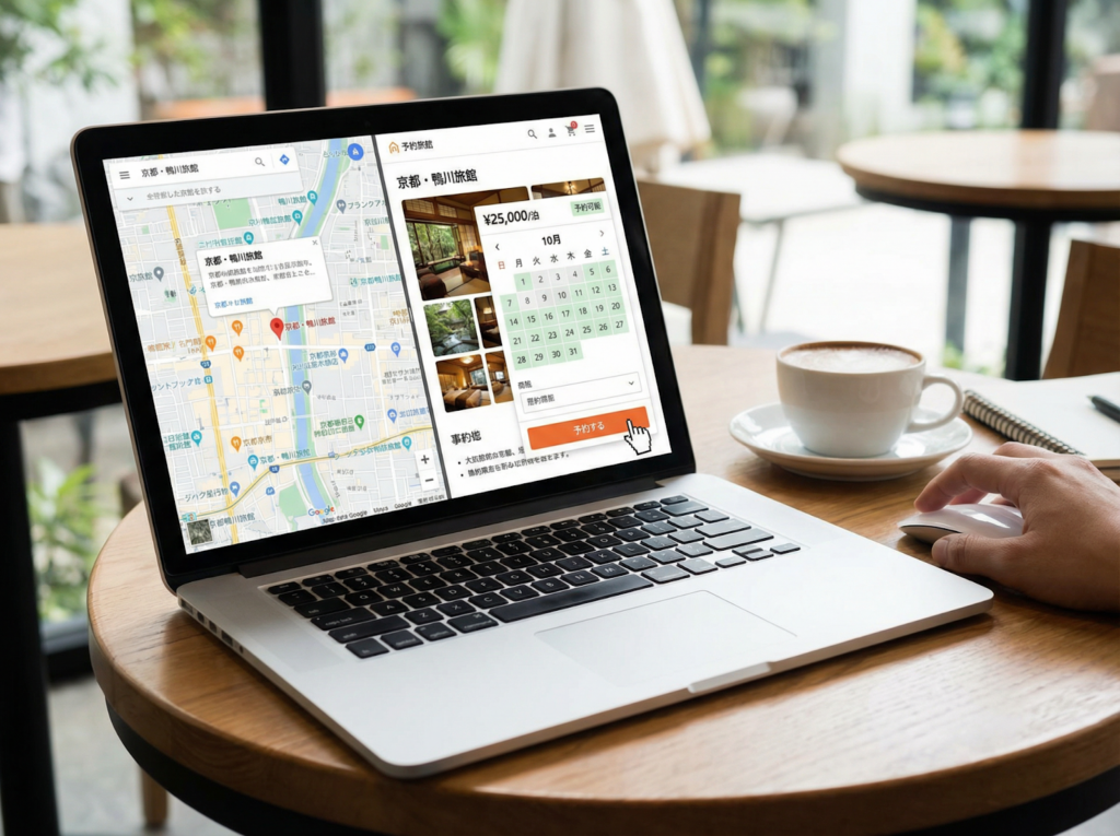 Googleビジネスプロフィールに予約エンジンを連携しておけば、Googleマップから直接Beds24の予約ページに飛ばすことができます。